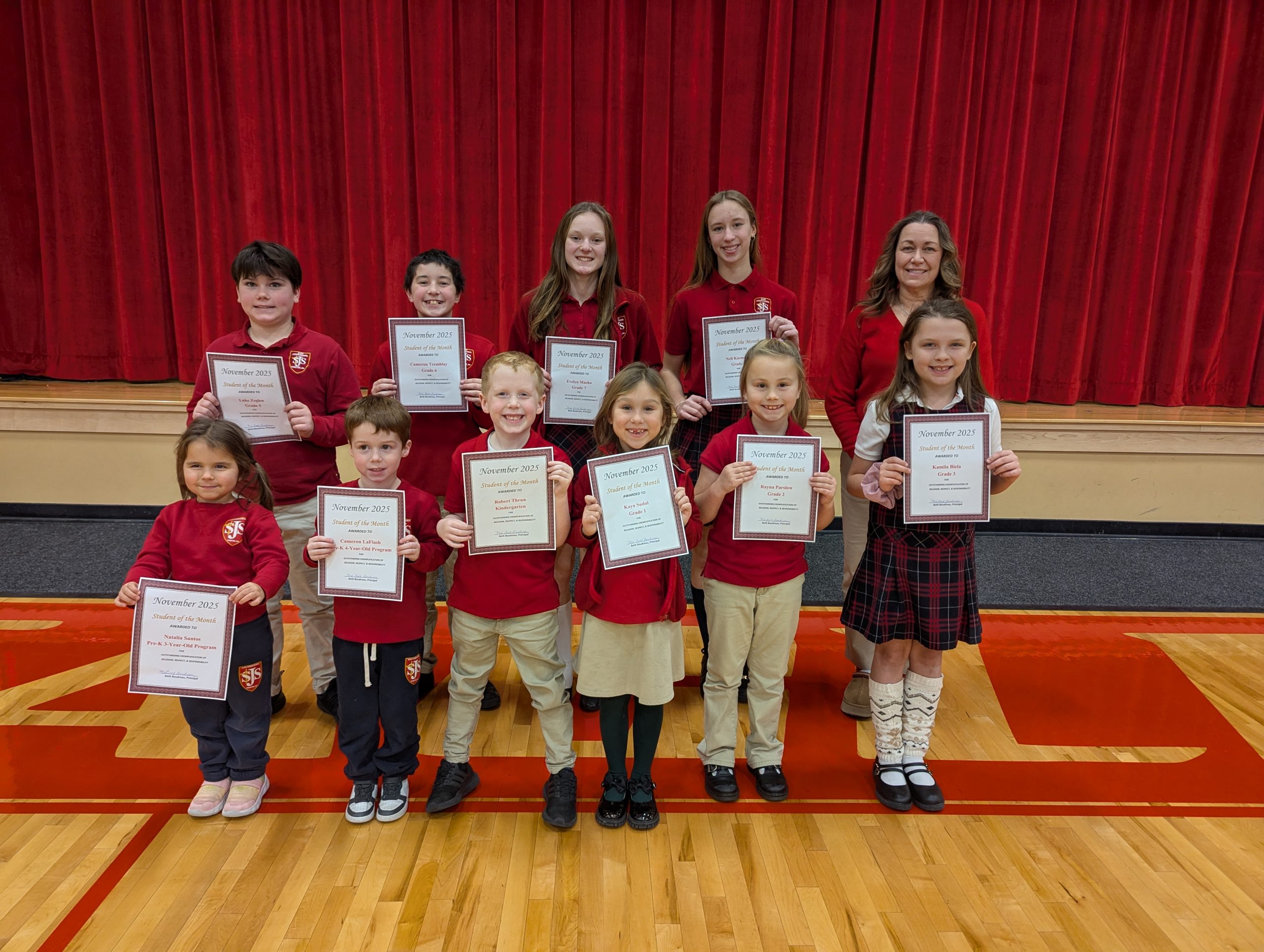 Students are awarded Student of the Month for their outstanding exemplification of Religion, Respect, and Responsibility.