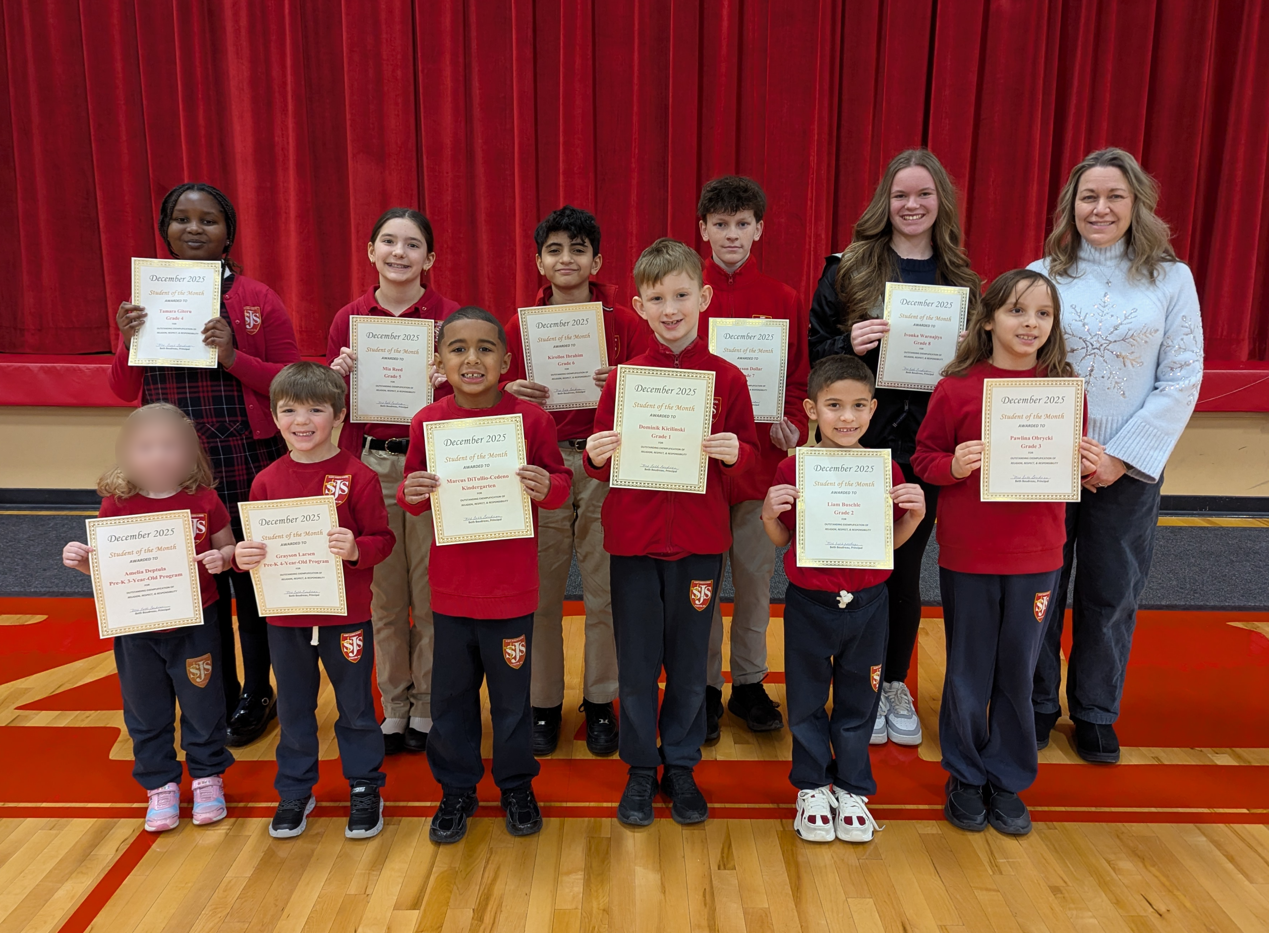 who were selected as December Students of the Month at St. Joseph School: